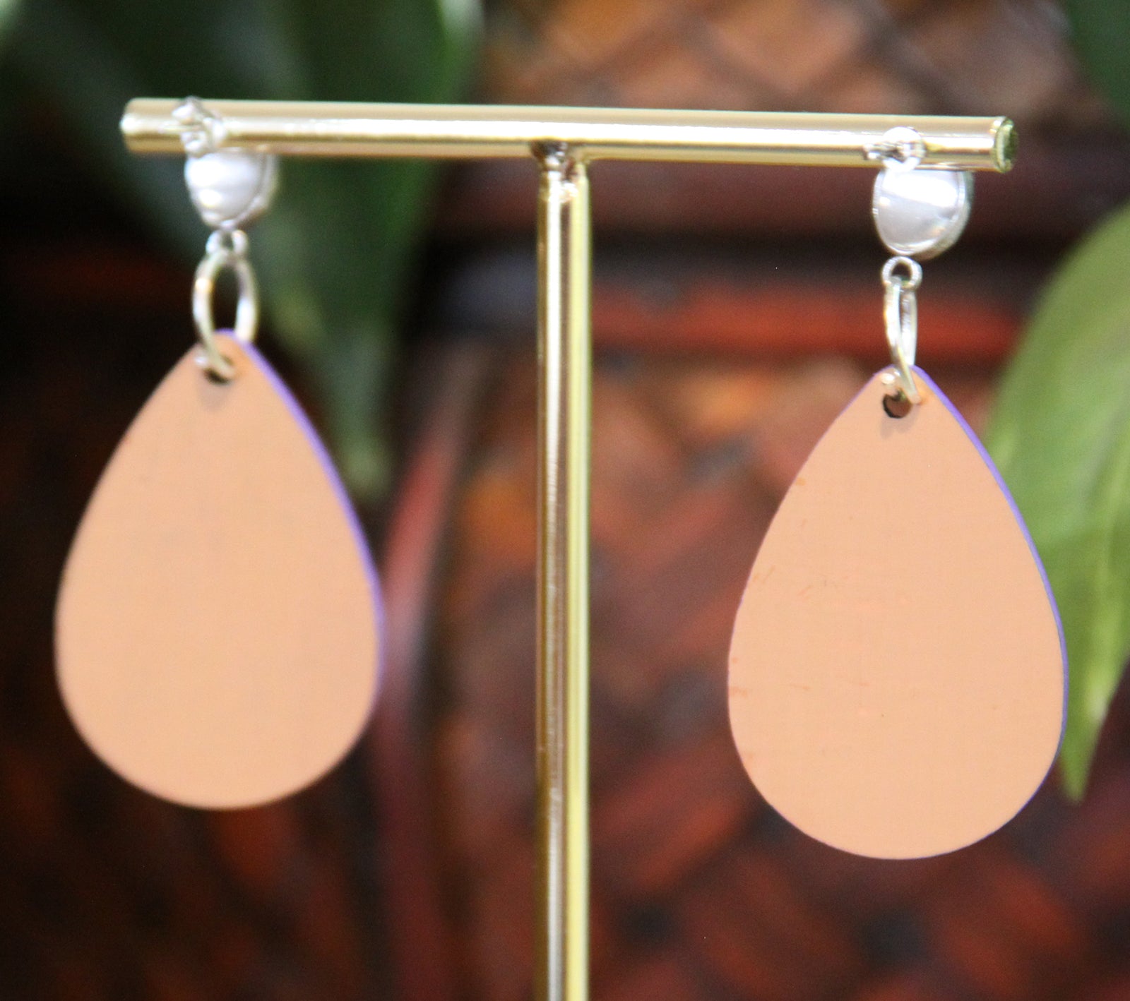 Light weight handmade earring with painted intricate botanical design - green, beige, black, white, yellow, purple and red create an artistically playful look. The back side is painted a neutral beige color. Edges are painted in purple as to provide contrast. There will be slight variations in the painted pattern as each piece is hand crafted. These earrings are an absolute showstopper and conversation-starter!