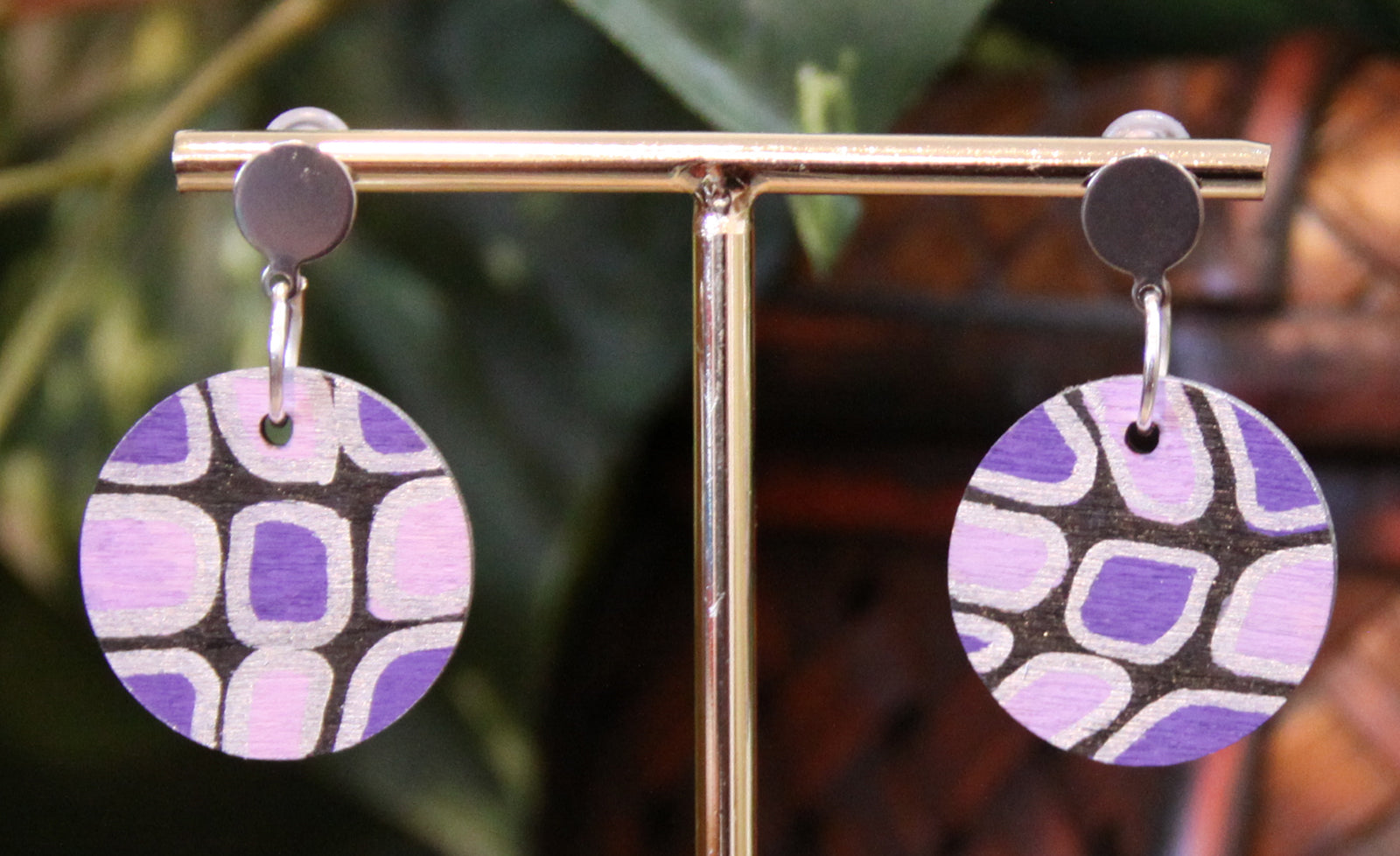 Purple, Silver and Black Geometric Circular Earrings