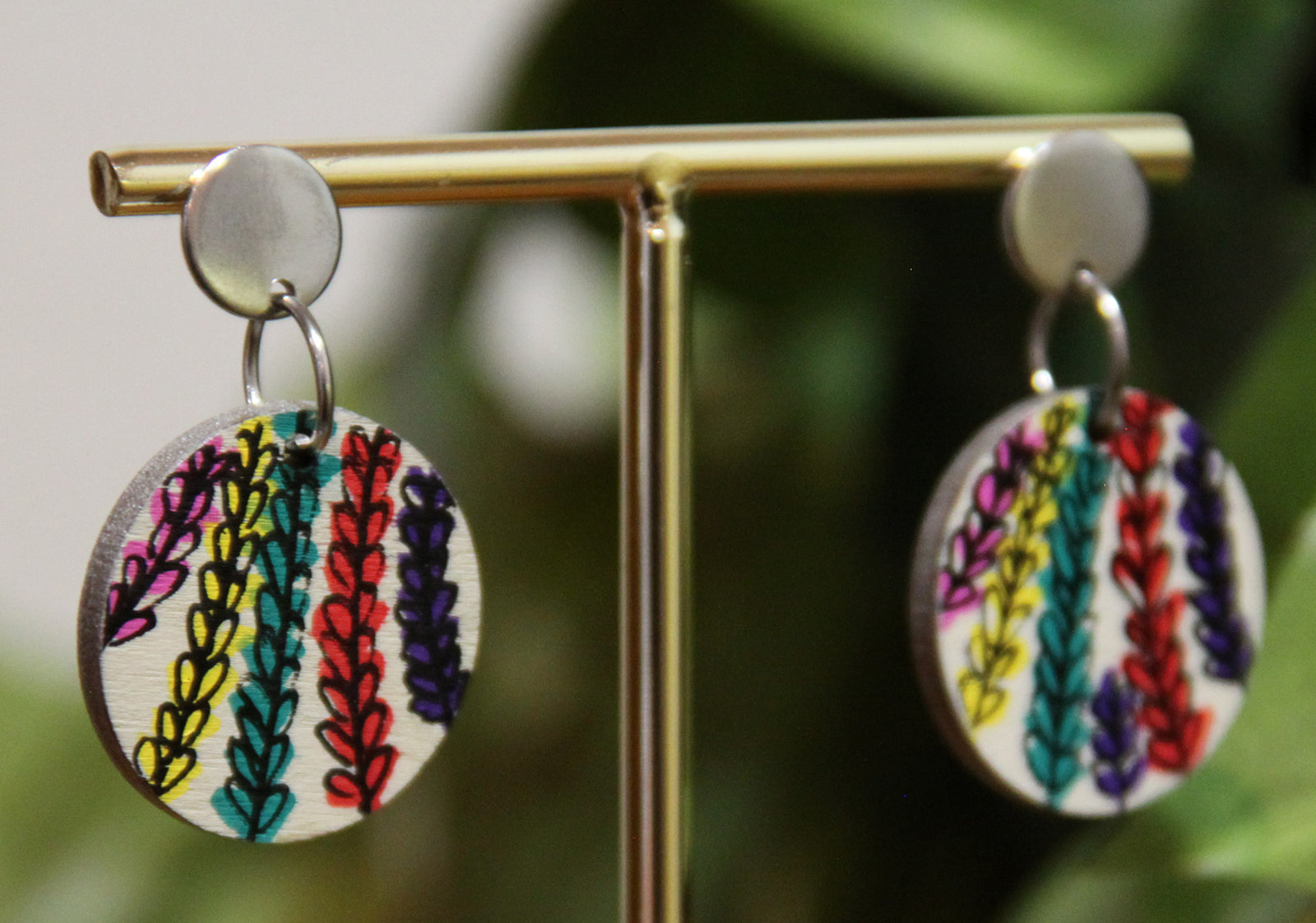 Floral Pink, Red, Yellow and Purple Circular Earrings
