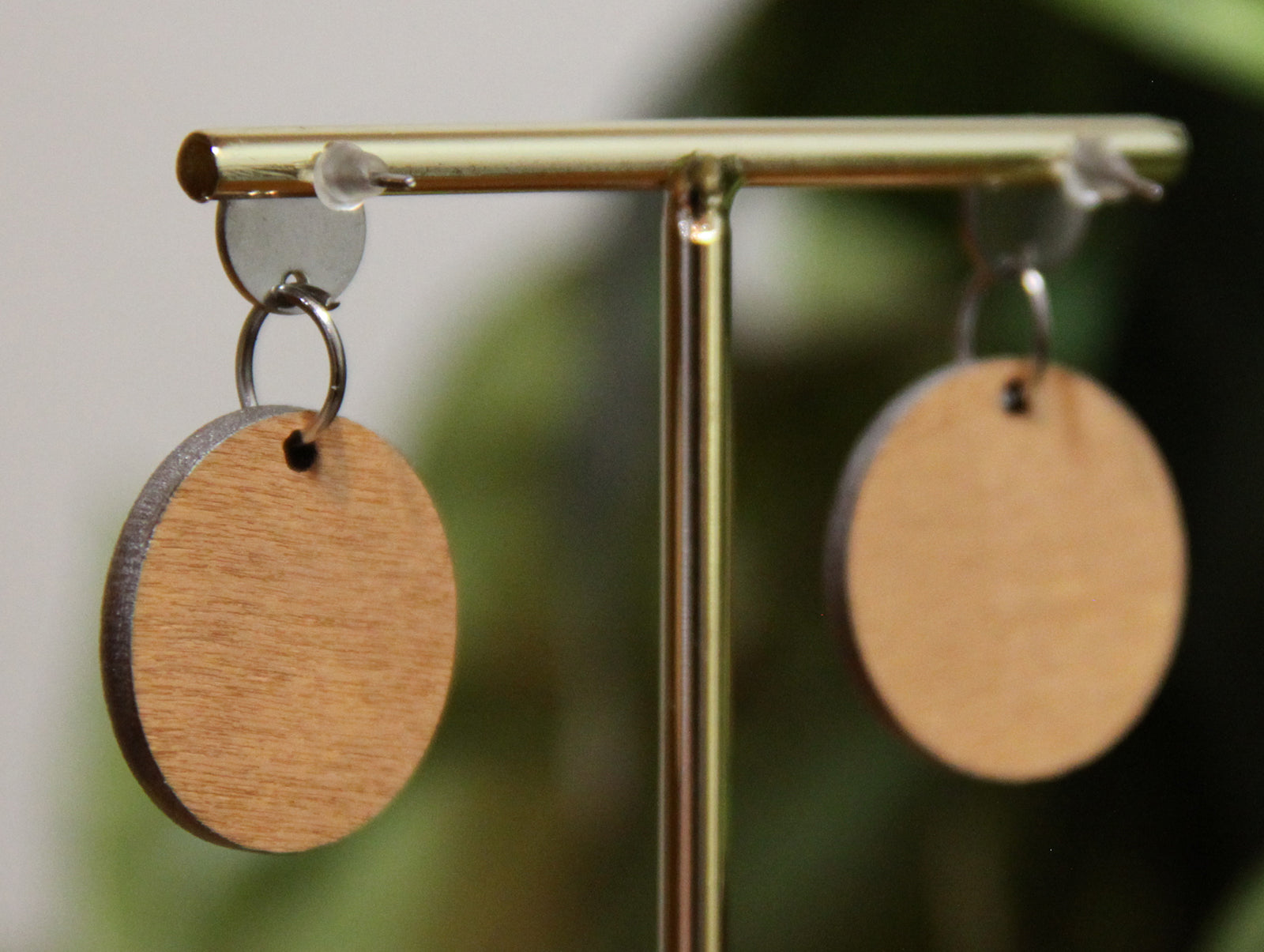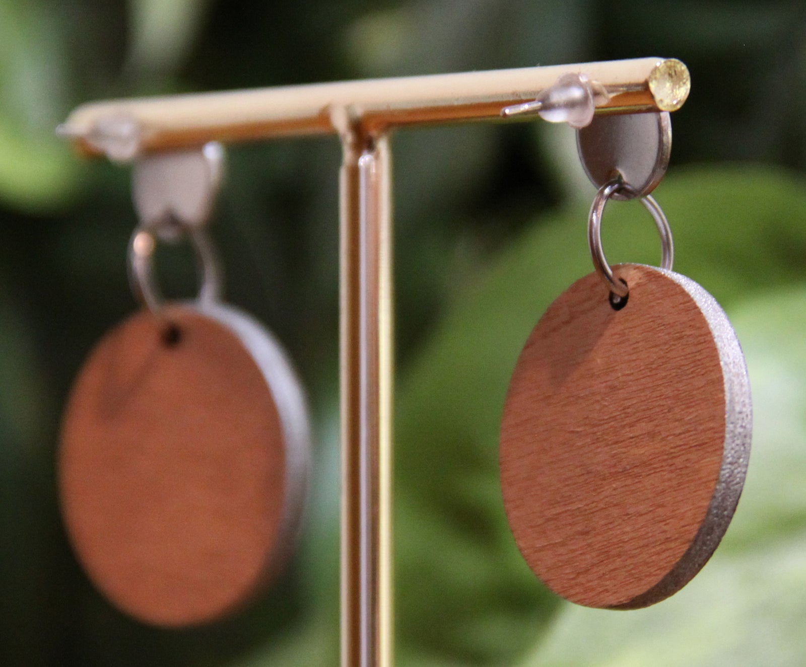 Light weight handmade earring with painted floral design - pink, yellow, green, red and purple painted in striking design over a neutral beige colored base. These earrings are artistically playful. The back side is painted light brown as to provide warmth. Silver edging detail creates an additional dramatic look. These are a show-stopper - a great addition to your daily wear!