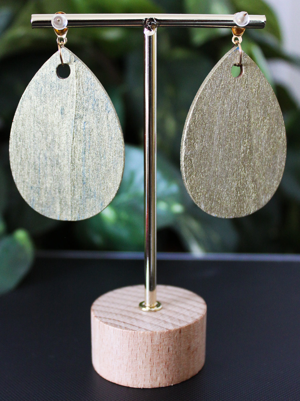Filigree Patterned Blue Silver and Red Wood Teardrop Earrings