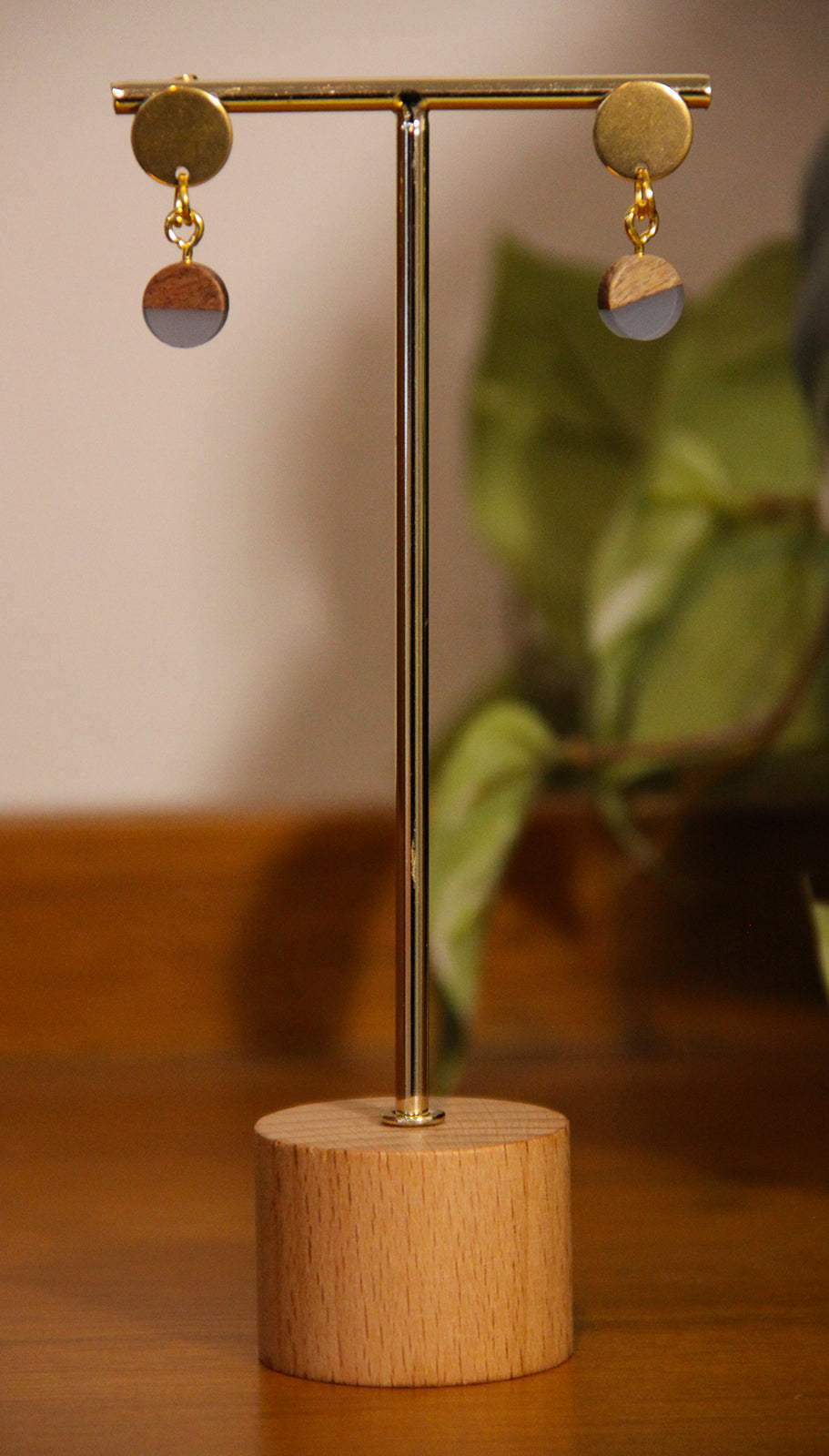 Small Gray Resin Wood Earrings