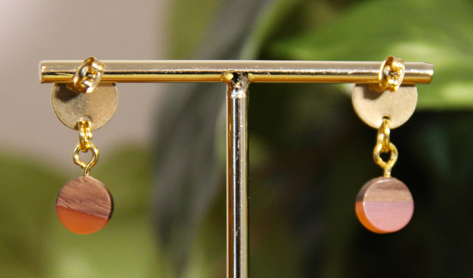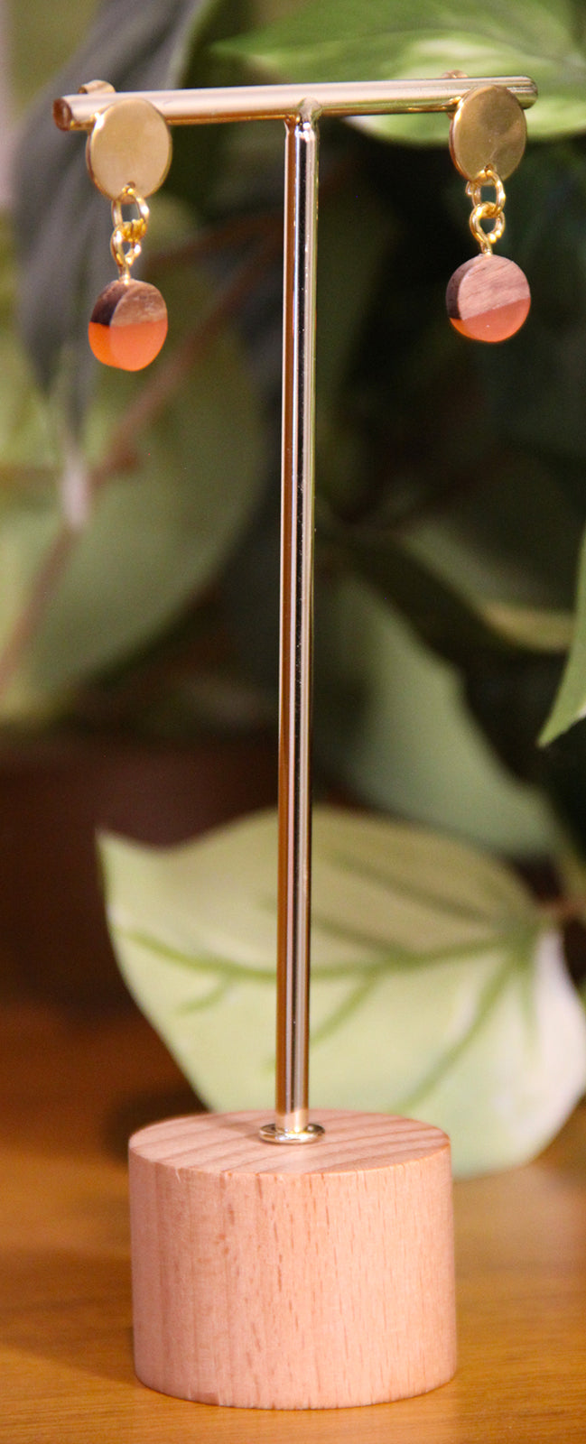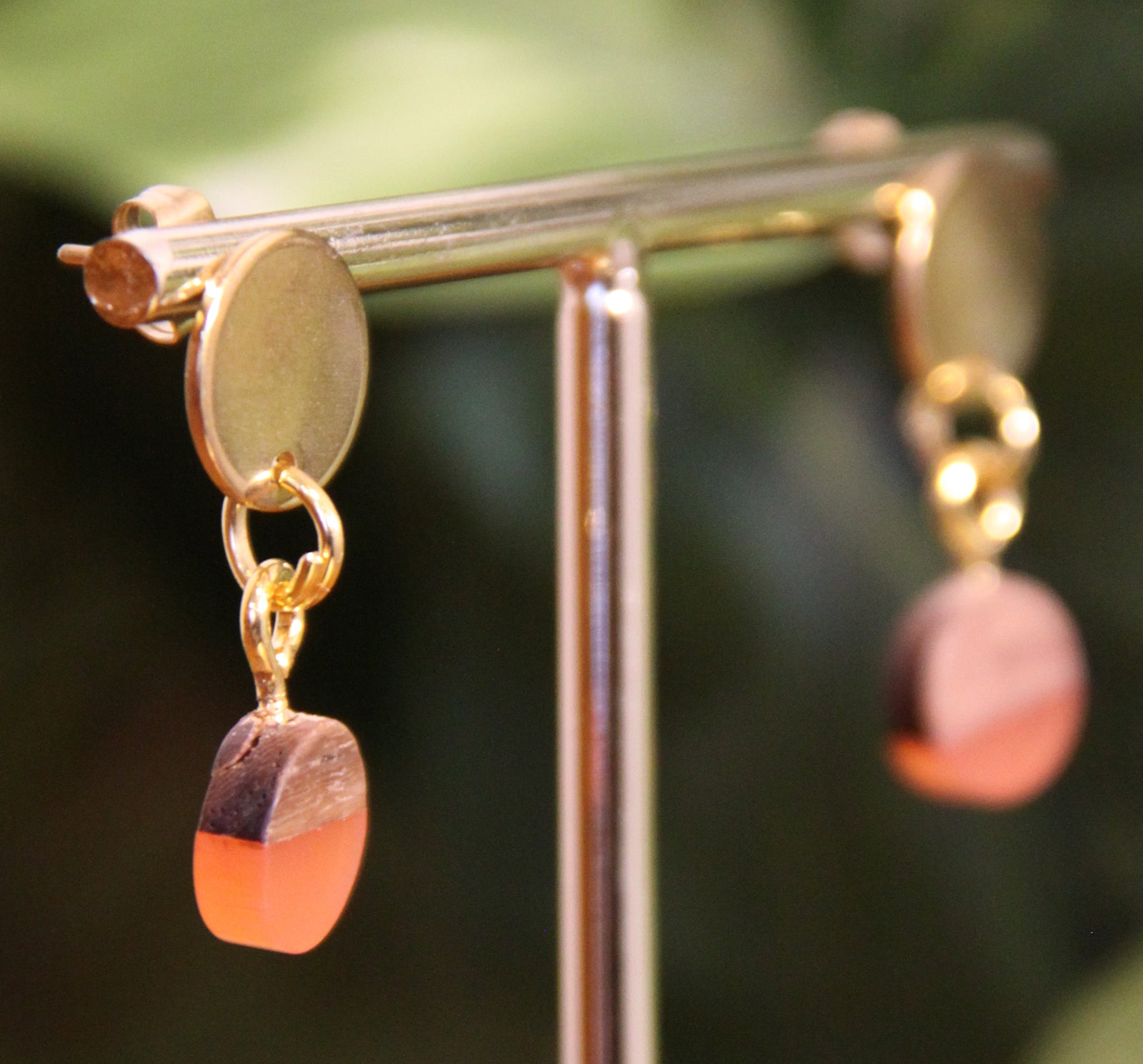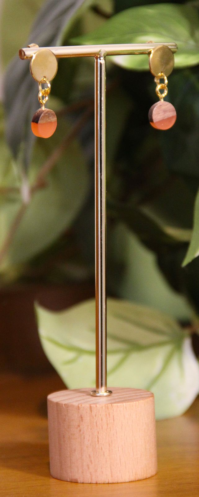 Small Orange Rust Resin Wood Earrings