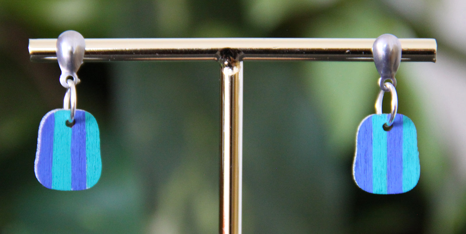 Teal and Blue Linear Small Rectangular Earrings